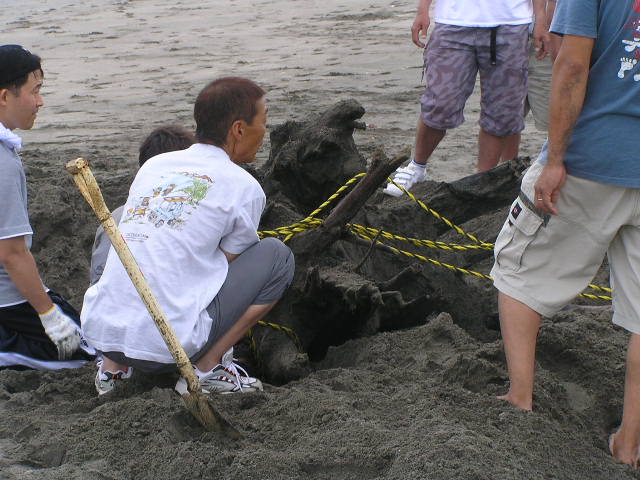 夷隅ポイント/和泉浦海岸2006年7月8日 岬町ビーチクリーン この日は小さなお子さんからお年寄りまで約800名もビーチクリーンに参加しました! こういった活動は美化するという目的もありますが、海亀や動植物にとっても益となっています。 ゴミがあったら海亀は産卵もできません。産卵の囲いがあったらそれも邪魔しないようにしましょう。 余談ですが、海亀は四輪バギーなどによってできる轍をもっとも嫌うそうです。 海亀産卵マップ!!(資料:夷隅郡市自然を守る会)